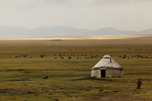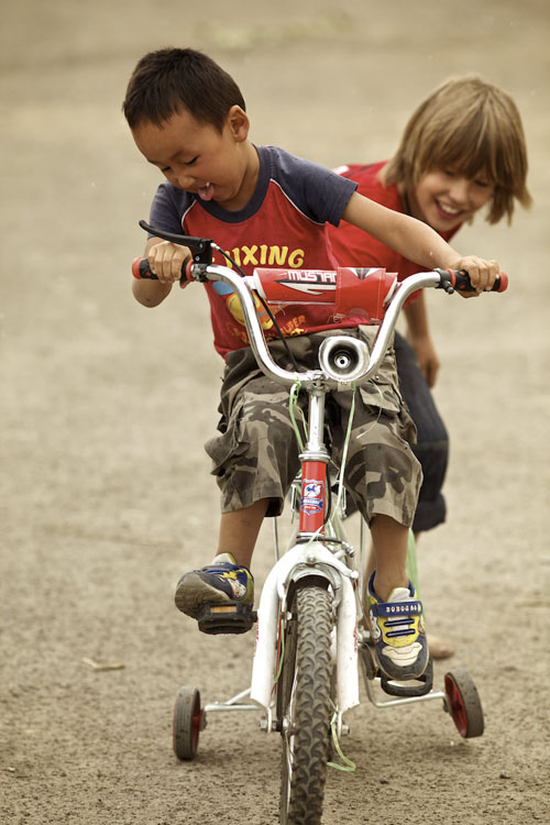 Emanuel Papert si hraje s dětmi v Kyrgyzstánu