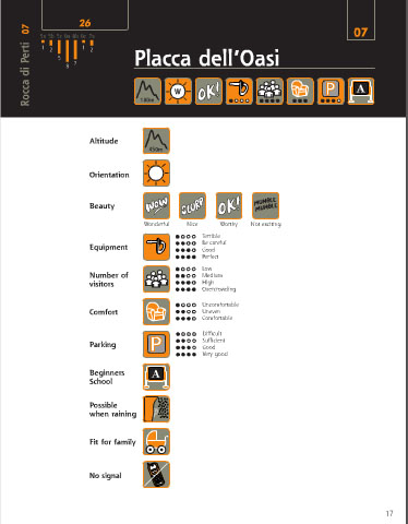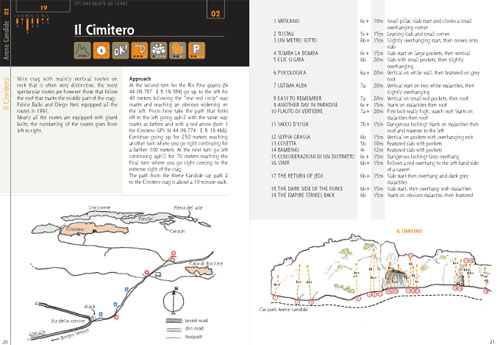 Toho si byl vědom autor průvodce Marco "Thomas" Tomassini, který dva roky trpělivě mapoval tuto rozsáhlou oblast, aby vytvořil prvního komplexního průvodce. A podařilo se. Na 560 stránkách (jde o pořádnou bichli) najdete přehledně zpracovaných 134 oblastí, více než 2000 cest, včetně vícedélek.  Kniha je také doplněna o krásné fotky, které přímo k lezení lákají a o několik zajímavých článků s hlavními tvůrci cest v oblasti.