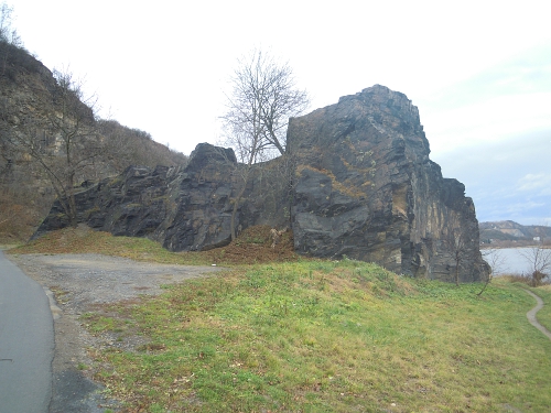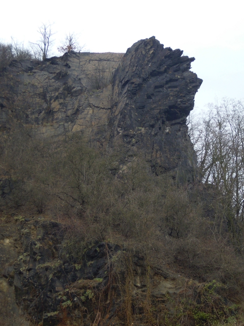 - Ony ty stěny okolo ve svazích bývalého lomu vypadají zajímavě, ale na lezení to nebude. Když ale půjdete po silnici doprava (ku Praze), můžete mezi keři přijít přes terásky vyskládané z kamenů pod údolní stěnu Pasáčka (od silnice 50 m). Pilíř je dobře vidět.
