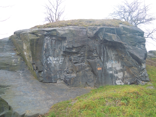 - Jistý potenciál, spíše bouldrový, nabízí široká náhorní a boční kolmá hladká stěna, především v zimě (pokud to vůbec půjde lézt). Na fotkách je dobře vidět bohužel jen ta lehčí stěnka.
