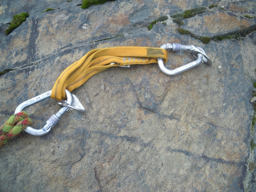 - Jištění je nutné použít vlastní, skoby (2) téměř nenajdete, ale snad jich tu prý bylo víc. Nástupy cest jsou označené obtížností, skála je čistá. Nad údolní hranou jsou dva nýty, případně se dá vyvázat strom.