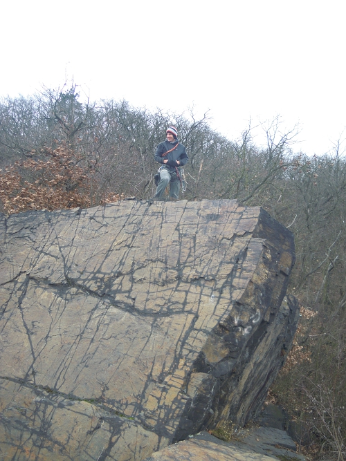 - Je to skála (polověž) typu zaparkovat, upadnout z auta a lézt, okolo travička (nečekejte ale borháky a nýty). Mezi zatáčkou silnice a řekou. Na šikmý placatý vrchol ze země vyrůstajícího "pařezu" se dá opatrně vyjít z náhorní strany.