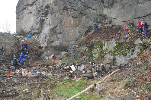 Především za poslední rok dává Petr mimo jiné dohromady historické informace o lomu, hledal pamětníky a jednal s vlastníky o lezení. Těžila se tu žula, poté sem nasypali odpad ze stavby místních hotýlků a lidi sem nosili co nepotřebovali. Místní horolezci v posledních letech občas obhodili nějaký strom nad lomem a sápali se po skále. Měli radost, že jsou venku.