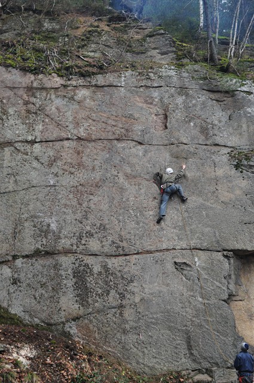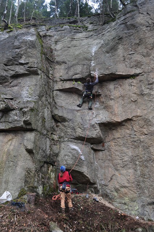 Vůbec jsem nevěděl do čeho jdu, viděl jsem jen pár fotek. Myslel jsem, že ty cesty už někdo vylezl (odspodu, po vlastním) a nerad bych se v západních Čechách někomu montoval do cest. Měl jsem ale zrovna nějaké borháky a nářadí, které by doma v týdnu zahálelo. Představoval jsem si, že bude užitečné dát na skály nějaké slaňáky a zbytek se uvidí.