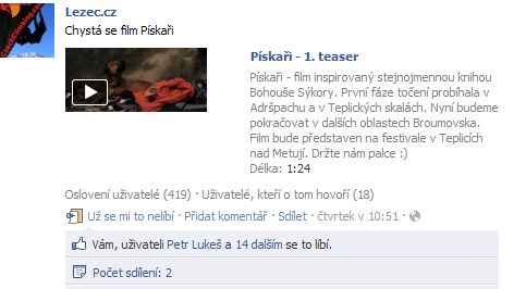 Video na facebookové stránce Lezce: www.facebook.com/pages/Lezeccz