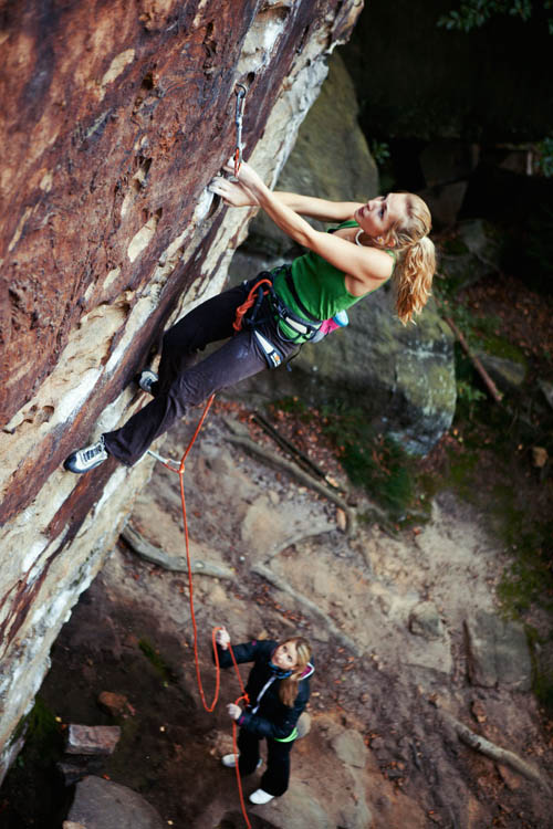 Katka Chudobová, leze cestu Hänsel Ohne Gretel ve Frankenjuře