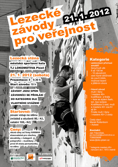 Dovolujeme si vás pozvat na závody pro širokou veřejnost a západočeskou elitu lezců s lanem konané 21.1.2011 na stěně  TJ - Loko Plzeň (www.tjloko-plzen.cz)