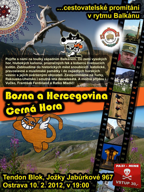 Zveme všechny do "Tendon Bloku" v pátek 10. 2. 2012 od 19 hod na promítání spojené s povídáním o průzkumném výletu po Černé Hoře, Bosně a Hercegovině. Něco se dozvíme i o lezení na Balkáně, ale jinak spíš o horách, o lidech a tak.