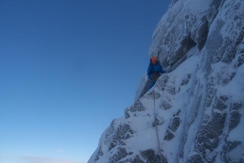 Ledového? Kde tam lezou ty ledy? :) Čekala jsem to trochu větší, jinak nádherné lezení kde se dá najít všechno. Takže asi i ty ledy. My jsme lezli spíš na pilířích a cesty byly oproti Tatrám kratší. Dají se najít těžké cesty o třech, čtyřech délkách, ale taky dlouhé pilíře, které jsou převážně tak za dva až tři, s jedním nebo dvěma těžšími místy, ale nekonečné. Ben Nevis prostě není typická hora, je to taková divná věc:), kterou nevím jak nejlíp popsat. Je to jako když vyklopíš puding, vylezeš ze stěny a vrchol je rozplizlý všude okolo.