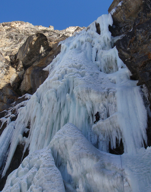 Následovalo údolí Valsavarenche a ledový amfiteátr Cascade Rovenaud. Další den jsme vylezli místní klasiky v údolí Valeille, jako jsou Tuborg, Candelabro del Coyote a další. Po „restdeji“ se jedna skupinka za doprovodu Tima Emmetta vydala na ledopád Joyeux Noel a druhá pokračovala dále do údolí Valsavarenche okusit místní ledové speciality, jako je obrovský Trip in the night nebo Antares. No a závěrečný den jsme zavítali do údolí Valnontey a vylezli zde parádní Candelone di Patri.