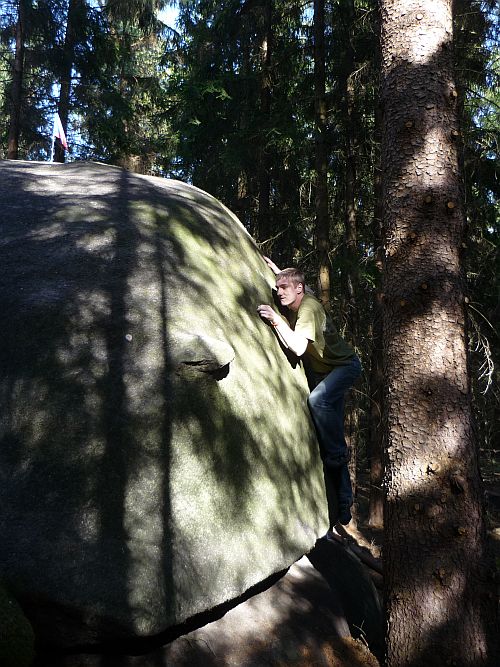 Druhá moje poznámka míří směrem do lesa samotného. Myslím, že s výjimkou nejbližších oblastí a oblasti, kde probíhalo v sobotu dopoledne MČR, bylo na lezení dost místa. Bloky byly roztahané na solidní ploše a ty vzdálenější (max. 1 km pěšky) byly hodně volné. 400 samostatných linií je pro 500 lidí na pohodu. A jak už píši výše, v pátek by tam mohl jeden i „zabloudit“.