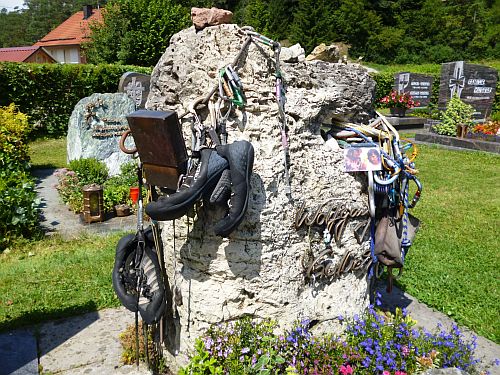 Zde naleznete ten pomník karabinami a lezečkami ověnčený: