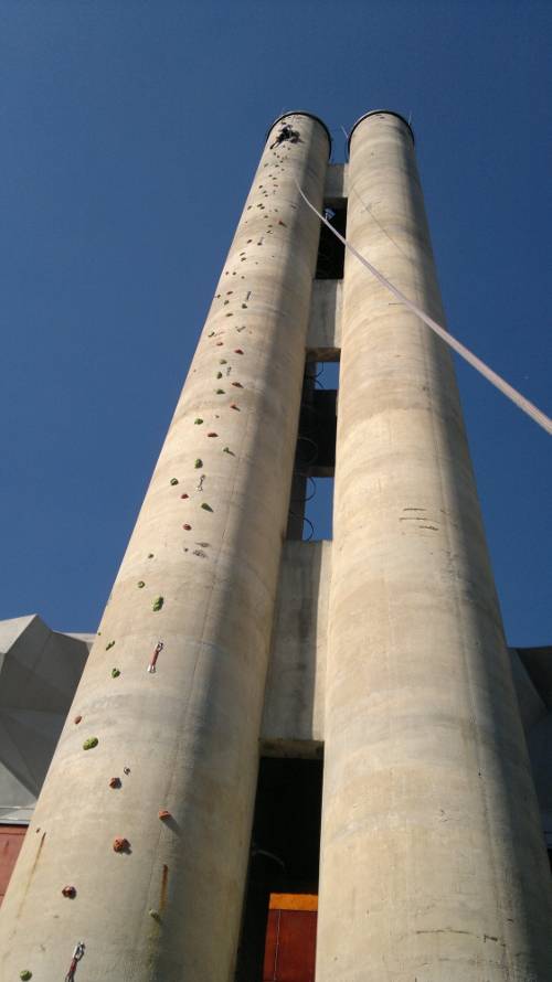 vnitřní lezecká stěna - plocha, výška 11 m, převislost až 6 m, počet linií, 12/2006; závody MČR obtížnost 2009, Tendon Cup.