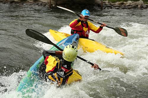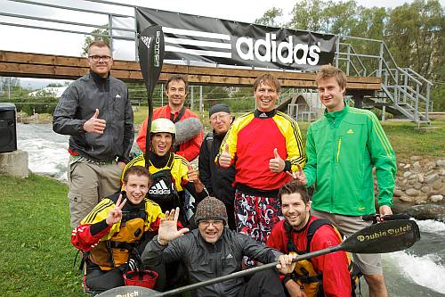 Následující ráno jsme se přesunuli na slalomový vodní kanál v Liptovském Mikuláši, kde nám své kajakářské grify předvedli Olaf Obsommer a Sam Sutton. Společně sjeli na kajaku několik krajně nebezpečných a divokých řek v pohoří Altaj v Rusku. „V řece jsme viděli plavat celkem dvě mrtvoly,“ vzpomíná Sam. Chtějí se tam nicméně vrátit. V Liptovském Mikuláši přemluvili Barbaru Zangerl, aby nasedla do kajaku a zkusila to na divoké vodě s nimi. Byla to její premiéra, ale vedla si dost dobře. Pak jsme si jízdu na raftu a na kajaku vyzkoušeli všichni a Sam a Olaf nám radili a pomáhali.