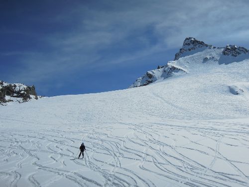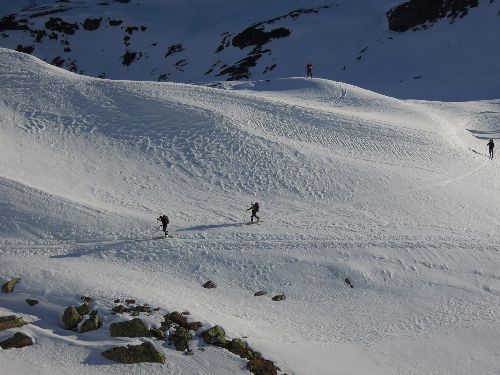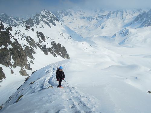 Plán byl prostý. Abych nezadělal na řádný průser někde nahoře a netahal Pavlu do něčeho, na co vůbec nemá, jsme si nejprve zalyžovali v Galtüru. Na sjezdovce ji to šlo dobře, měla jistotu, mimo sjezdovku se ji příliš nechtělo. Jsem si pevně vědom, co znamená být jistý na lyžích na sjezdovce a ve volném terénu za každých podmínek. Ale dobrý základ Pavla měla! Dalším faktorem spokojenosti na skialpech je fyzička nebožáka. Pokud není, tak je to trápička a už jej asi nikdy nikam nedostanete. Tady jsem trochu spoléhal a věřil v pravidelné její běhání. Nezmýlil jsem se a byl jsem mile překvapen. A zásadním faktorem spokojenosti začátečníka je dobré počasí. Neskromně říkám, že se mnou bývá velmi často skvělé a my měli domluveno absolutní azůro. A když nebožák splňuje všechna kritéria, musí být alespoň trochu šikovný poprat se se skialpovou technikou, což podle mne zase až taková věda není. Sportovní talent je výhodou.