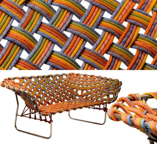 I toto je možné udělat. Ocelový rám, výplet z recyklovaných lezeckých lan, je eko sofa, který se bude shodovat s moderním interiérem.