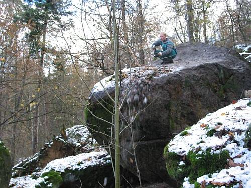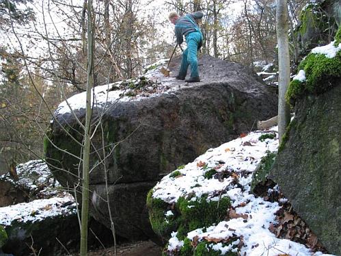 předběžně bych vás rád pozval na možná poněkud originální akci, ačkoli v kraji žulovým šutrům zaslíbené již něco podobného proběhlo. Totiž, rádi bychom někdy za stabilního počasí, tedy nejspíš někdy v polovině června využili boulderové pohostinnosti petrohradských lesů a s Karlem Hegrem uspořádali závody na přírodních kamenech. Za tímto účelem zprovozníme nějakou novou oblástku (např. viz foto) a na absolutně nových neznámých šutrech by to celé mohlo proběhnout. Systém předběžně vidím tak, že by se v definovaném okruhu označilo body ca. 20-30 směrů, ty bychom společně obešli a poté by se odstartovala hodinka lezení. Podle nasbíraných bodů (pouze celé vylezené věci) by se určilo pořadí. Bodování by určitě bylo uděláno tak, aby se vyplatilo vylézt méně těžších věcí, než více lehčích, ale šanci v tomto systému dostanou i slabší. Obtížnosti budou někde od trojky po masakry.