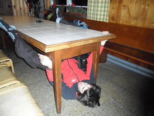 Ráno se probouzíme do totální vichřice. Dnešní lezení je asi tak reálné, jako potkat žirafu na severním pólu. Zkoušíme se dostat alespoň k ledům pod Svišťovkou. Po půl hodinovém boji, kdy se místy boříme po pás ve sněhu a nevidíme skrz všudypřítomný sníh, jehož koncentrace je ve vzduchu minimálně 50 procent, pokus vzdáváme a vracíme se na chatu. Zbytek dne trávíme kecáním s místními ostřílenými horskými vlky a zdoláváním místního vyhlášeného bouldru (stůl ve vchodové místnosti).