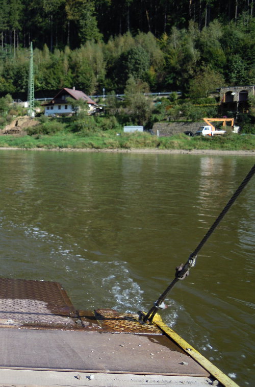 Lano pravděpodobně přeťala šroubem rychle jedoucí loď při průjezdu zatáčkou. Přívoz stál u břehu a nějakou dobu nepojede. Na webu EC to zatím není, ale snad nějak dostaneme info od místňáků, až bude přívoz funkční: přívoz je od června opravený, ale v červnu nejezdil, deště a povodně zvýšily hladinu vody (jezdí, pokud je méně než 300 cm na vodočtu v Ústí – odkaz na Hydro.chmi.cz).