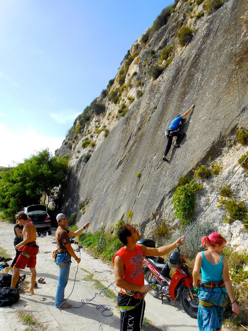 Co se týká toho sportovního lezení, na kterém je z nás spousta závislá (a nebo taky ne:-) ), tak na samotném ostrově Malta určitě člověk musí navštívit fantastický údolí Wied Babu, které je takovou Mekkou sportovního lezení na Maltě. Nachází se tu krásné, 25 m vysoké kolmé stěny, některé zakončeny převislými finálovými metry skály. Východní strana skýtá o něco více sportovních cest, oproti té západní, a zalezou si tu jak začínající lezci tak i profíci – cesty jsou tu od obtížnosti 4c, přes klasiky jako Flying Aréte 6b+ či Katia 6c až k 7a. Západní strana nabízí méně sportovních  cest v obtížnostech od 6a, přes klasiky jako Dirty Rotten Scoundrels 6b+, Gates of Babylon 6a (tady bych byl momentálně trošku obezřetný, jelikož jsem tu při tahání cesty schytal žihadla od místních včel do své mužné hrudi i přesto, že jsem se choval víc než mírumilovně:-) ) a nyní nově osázená jeskyně s názvem Smoothies (kluci byli ten den v baru :-) ) s parádními převislými stěnami a stropem s cestami začínajícími na 6b až k 8a. Pro příznivce spár je tu nádherná „stropní spára“ s velmi příhodným názvem Let it Bleed v obtížnosti 7c s cruxem skoro na konci cesty – velmi výživný.