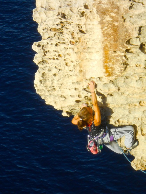 Takže, na takového lezce tu vlastně čeká to „tradiční“  lezení s vlastním jištěním, pak jsou tu možnosti toho sportovního, a jelikož Malta je ostrov, tak samozřejmě i DWS (DeepWater Soloing) a je tu toho spousta, jen člověk musí dávat bacha co má pod sebou a jaký je taky přístup z moře zpátky na pevninu. DWS a traverzy nad vodou jsou velmi populární hlavně v létě (který tu je od dubna do listopadu :-D) navíc Malta, nebo respektive materiál na kterém se tu leze, se nazývá „Spodní korálový vápenec” což je nejtvrdší druh skály tady na ostrově a skvěle se hodí pro skalní lezení. Někdy je hodně kapsovitý, s hlubokými oblými spárami a nebo ostrý, s malými hrankami, ale vždy pevný a spolehlivý. Dokonce i tenký „pramen“ skály vyžaduje velké úsilí na to ho zlomit. A pokud člověk zůstane na úrovni této skály, pak se nemusí ničeho obávat a to nejen při DWS. Navíc na této úrovni si s pobřežím často pohrávají vlny a ty také vytváří místy značně ohromující převisy, které bývají v případě DWS často vyhledávány.