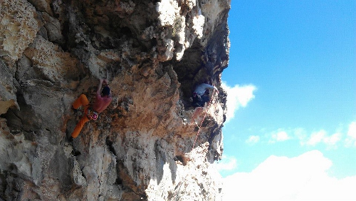 Určitě nesmím opomenout fantastické (omluva za ty neustálý superlativy ale prostě je to tak!) lezení na útesech, kterých tu taky není zrovna nejmíň. Jen pár set metrů chůze z údolí Wied Babu se dostanete na nádherný 36 m vysoký útes zvaný Red Wall / Blue wall (z druhé strany) s cestami začínajícími na 5c+ přes několik 6b/c až k 7b (Run Run Run 7a **). Další místa jako Thaiwand wall a Continual wall jsou útesy na druhou stranu od údolí Wied babu a nabízí dlouhé, lehce převislé vytrvalostní cesty (vícedélky i jednodélky) s 3* hodnocením. I přestože sportovních cest je tu jen několik, určitě jsou to absolutní MUST VISIT (nutnost navštívit) místa, kam by jste se určitě měli podívat!