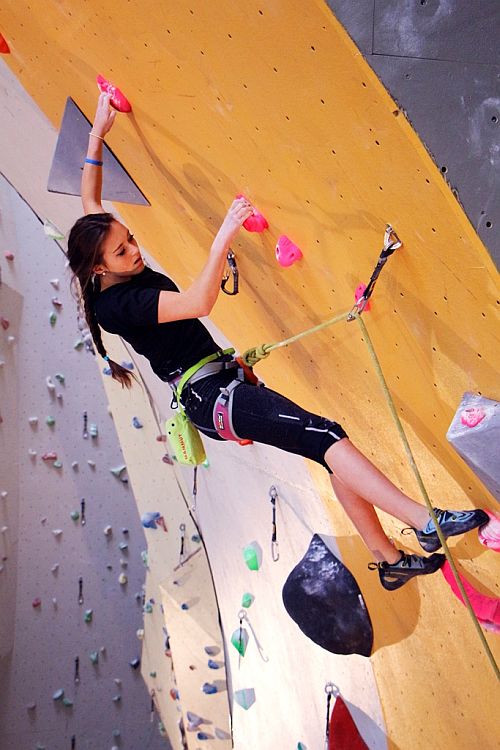 Závod konečně začal a hned se bojovalo o finále, které tentokrát nebylo zadarmo  - holky v první kvalifikaci většinou celkem bez problémů dolezly do závěrečné pasáže, kde ovšem značně přituhlo a nakonec z toho nebyl ani jeden top.