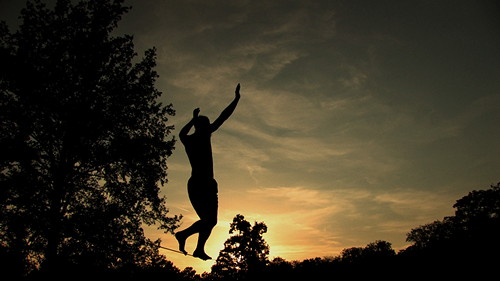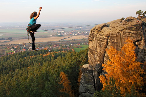 Skákání, salta a další triky je trickline a královskou „disciplínou“ je vysoko napnutá highline.