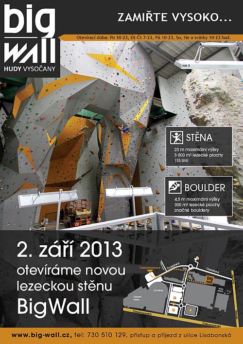 Všechny potřebné informace o stěně BigWall naleznete na našich nových stránkách www.big-wall.cz. Stránky zveřejníme koncem srpna. Zatím sledujte FB.