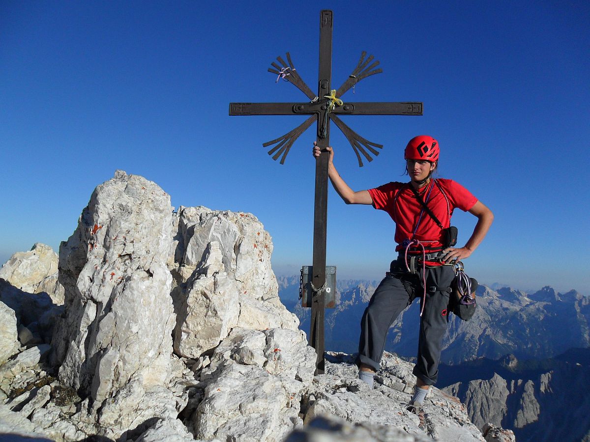 Po přehákování zbytku převislého kouta vše, jakoby mávnutím kouzelného proutku, uschne a my můžeme zbývající lehké délky dolézt zase volně. Nedá se nic dělat, pro volný přelez se budu muset ještě vrátit. Cesta za to určitě stojí.  Povinné vrcholové foto a rychle dolů k autu. Já si dělám ještě okružní jízdu kolem Čim, protože mi asi z pátého štandu spadla expreska. Stejně ji nenacházím.