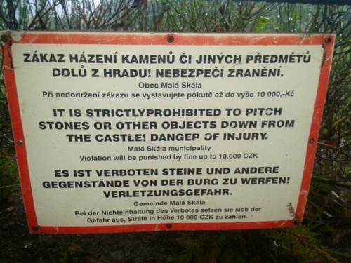 Podle cedulky to zni jako by hrozilo zraneni hazejicimu. Zminka o lezcich by byla vhodna. Fotky budou fajn. S grafikou muzu pomoct.