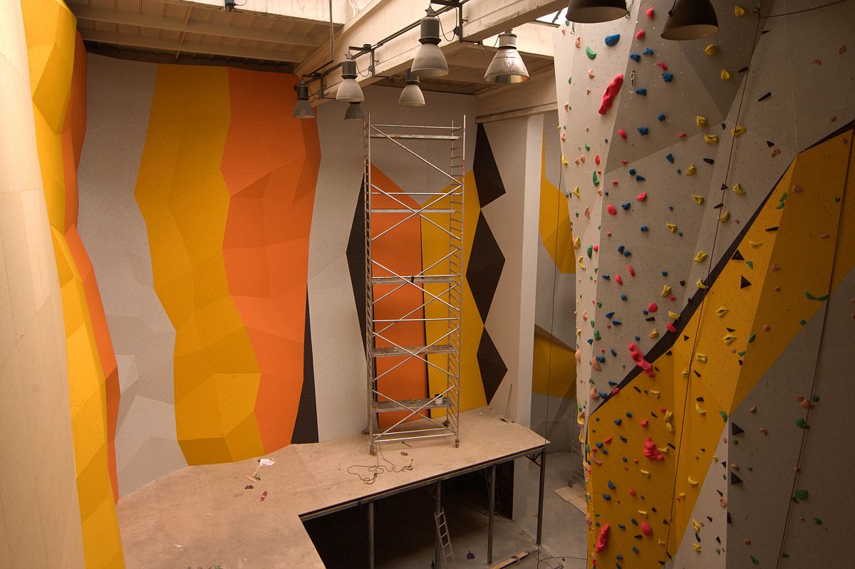 Nové části haly, která oproti stávající lezecké aréně, zvětší svůj prostor přibližně o dvě třetiny, dominuje mohutný pilíř. Spíše taková polověž, na kterou lze lézt skoro ze všech stran a vedou na ni dlouhé kolmé i mírně převislé cesty. Dost se mi líbilo, že pilíř dělí prostor a tak zde budete moci lézt relativně v klidu na jedné či druhé straně.