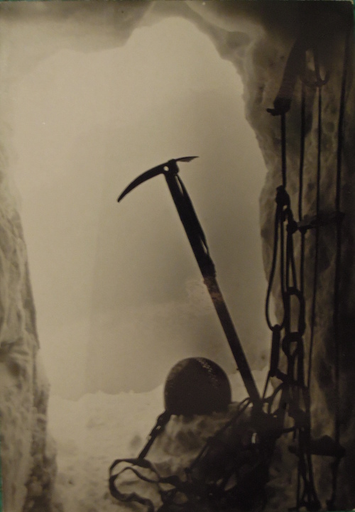 Ráno jsem se probudil s tupou hlavou a koženou držkou. Dlouho jsem ležel a pak vstal. Mám práci, musím vybalit ten ruksak a psát. Ale je hezky, tak se mi nechce bejt ve sklepě, vybalení odkládám, k snídani načínám ten novej chleba a ovomaltinu, která je ještě částečně použitelná a kterou jsem seškrabal na povrchu ze stěn rance. Plavou v ní ňáký nudle a sirky, ale aspoň je to výživnější. A s tou vlastně nemusím šetřit, to je kořistní materiál. Vezmu psaní a dalekohled, du zas ke Gr. blicku, tam se sleču do trenek a střídavě píšu a koukám. 2 lidi jsou ve skalách nad 2. led. polem, jinak nikoho nevidím. Jsem tam až do 2 hodin, pak se začíná kazit počasí, tak se vracím do díry a pouštím se do toho ruksaku. Je to příšerná, dvouhodinová práce, musel jsem to vyhazovat rovnou pod sprchu. Všecko je slepený od tý rozmáčený a roztržený ovomaltiny a v tom jsou rozsypaný nudle, sůl a sirky. Obsah: Ovomaltina, 3 konzervy, sůl, malý zbytek těstoviny v roztrž. pytlíku, porce bramb. kaše v prášku, rozbitý vařič a 2 bomby, zlomený pikl, svazek skob, repšňůra, sekera, nůž, 2 lžíce, demolovaný hrnec a čaj., konvice, smyčky, nářadí, mačky, asi 7 krabiček sirek a 2 páry reservních bot.