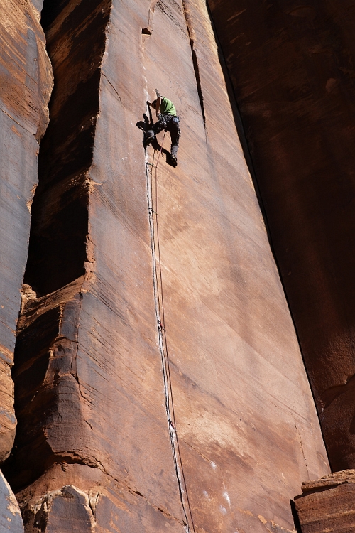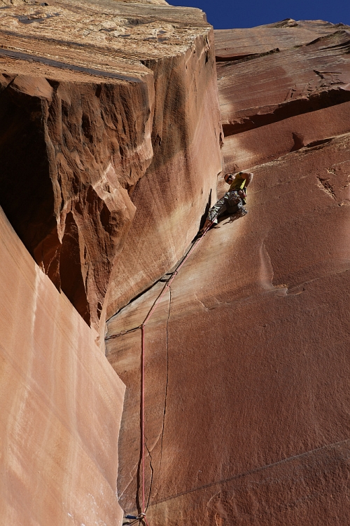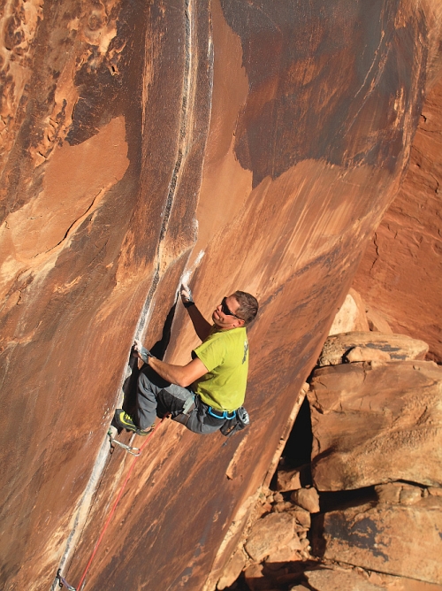 Amerika, Utah, Indian Creek. Spáry, trhliny, širočiny. Všechno to, čemu jsem se dřív doma při lezení vyhýbal, mě o otáčku spirály času dohání tady ve Velké zemi.