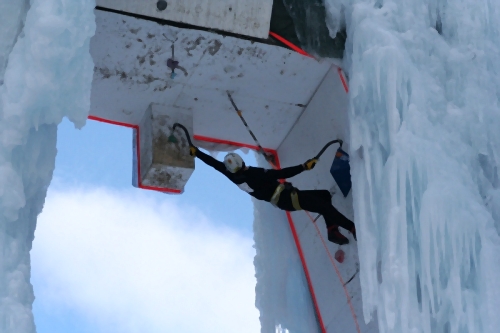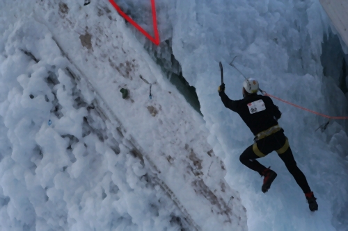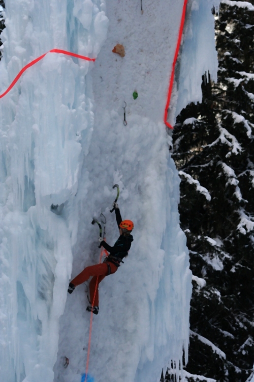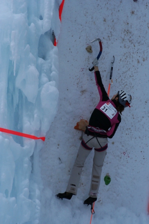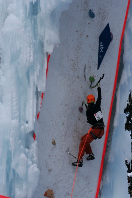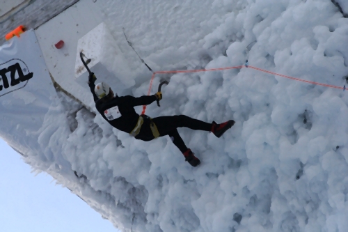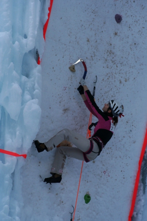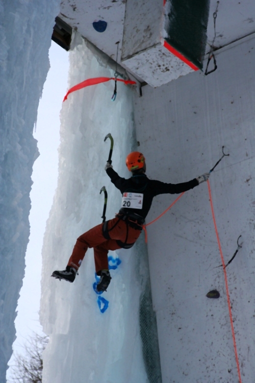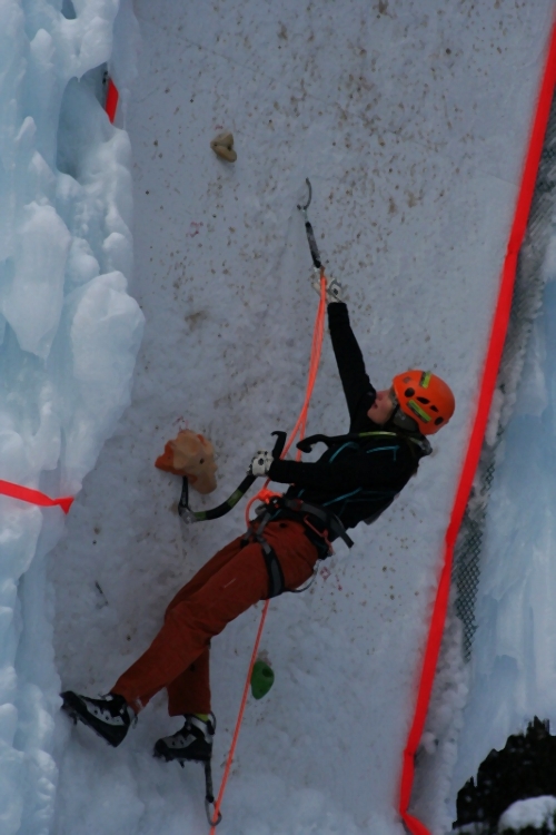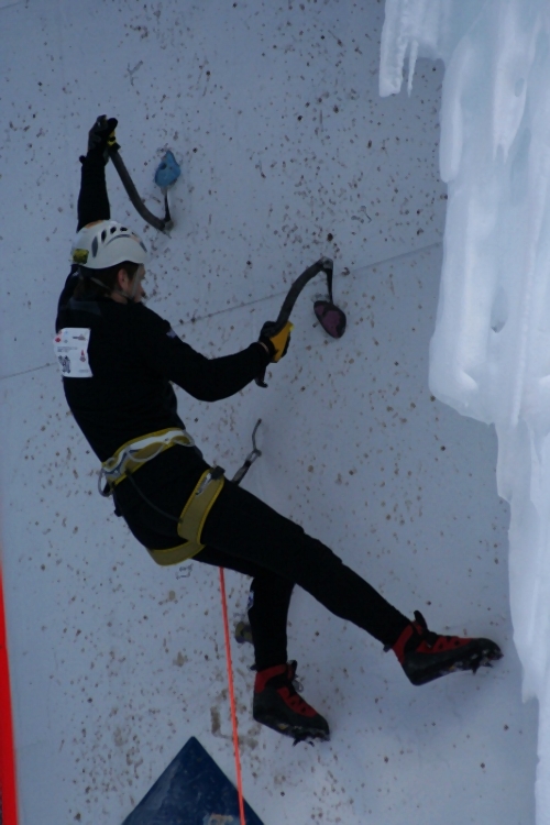 Jako první se představila Martina na ženské cestě a zalezla velmi hezky. Se štěstím ustala bouldr do spoďáku nad třetí expreskou a pak už jela jak motorová myš. Bohužel si dost nešťastné zahodila cepín při přechodu z ledu do stropu. Další zkušenost pro závody a hlavně MS juniorů příští týden.
