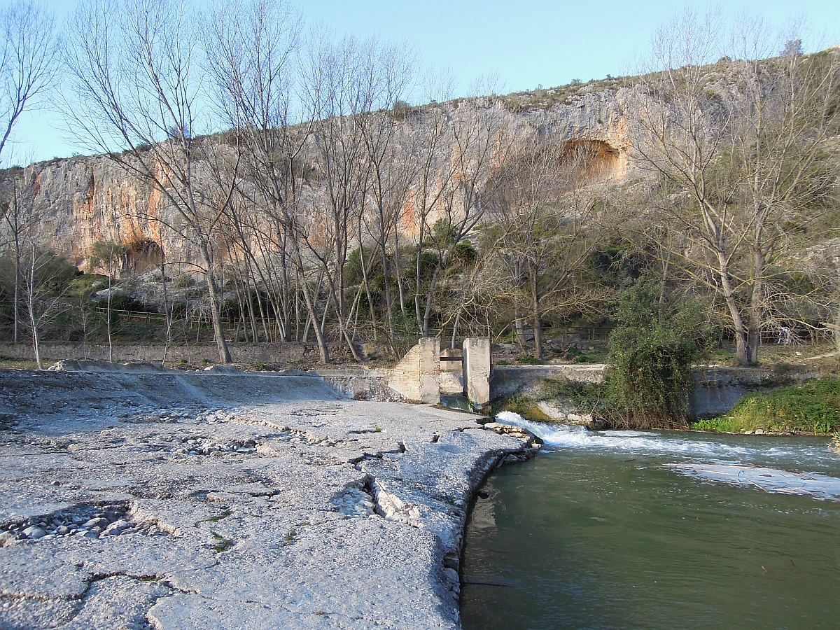 Pod stěnami Cueva Peschina šumí řeka rozvaleným jezem(hi res)
