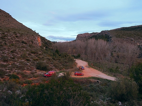 Kemp byste tu hledali marně a penzion v ospalém Bellúsu asi taky nebude a tak zde místní lezci spí v autech na parkovišti u vstupu do kaňonu. A tento parkáč je jakoby předurčen pro pohodové přenocování. Od vesnice daleko, umístěn v romantickém ďolíku a silnička sem vedoucí končí u závory. Takže pohoda. Ovšem, opět jen v případě, že nebudete stavět stan a nebo pobývat příliš dlouho.