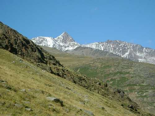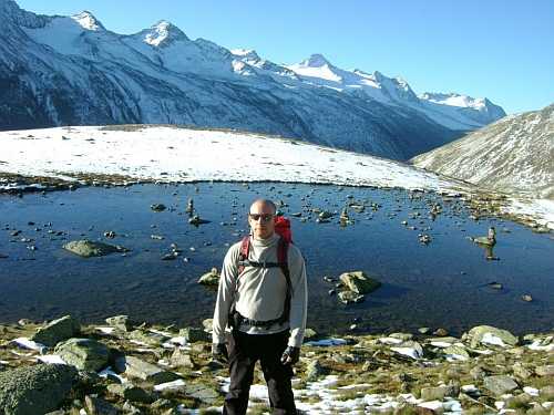 Ačkoliv chceme ráno vstávat po páté, Matěj mě vykope ze spacáku až po šesté a po malé snídaní se tak dostáváme na cestu až kolem sedmé hodiny. Naším cílem byl Mitllere Guslar Spitze (3.126 m.n.m.) Cesta se táhla po vrstevnici od Breslauer Hutte. Pěšina je příjemná a my postupem času sundáváme teplé  oblečení a  nakonec  nám stačí jen kraťasy a tričko. Procházíme kolem pleska (asi slangové označení pro malé pleso )  za kterým cesta začíná klesat k potoku Vernagtbach. Potkáváme stádo oveček.