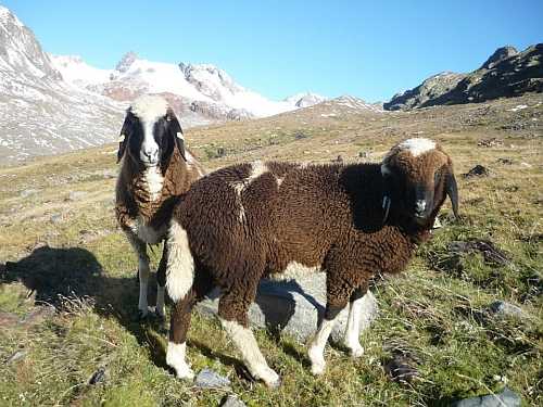 Matěj je hned začne prohánět po stráni a fotit si je. Více mu ovečky nedovolily…. Sestoupíme až k potoku, kde je rozcestí pod chatou Vernagthutte,  ale my se vydáváme na druhou stranu ke Guslar Spitze po pěšině, která vede i k chatě  Hochjochhospiz. Když studujeme mapu, vidíme, že cesta na Mitllere Guslar Spitze vede jen jedna,  ve skutečnosti  musíme kopec, který vidíme nad námi celý obejít. Po kratší diskuzi se nakonec rozhodneme vyrazit na horu přímo, mimo vyznačenou cestu. Každý jsme si šli podle svého, po skále, po suti – ale naše plánovaná cesta zespoda vypadala mnohem líp, než jaká ve skutečnosti byla. Za každou terénní vlnou se objevila další a ještě více skalnatá. Studujeme pořád mapu a trošku se dohadujeme kudy jít, protože přímo to prostě nevylezeme.  Nakonec se rozhodujeme pokračovat zleva, kde vypadá terén schůdnější. Závěrem však stejně lezeme po skále, protože Matěj nechce kvůli lepšímu terénu sestoupit níž  a tím ztratit tak pracně nastoupanou výšku 