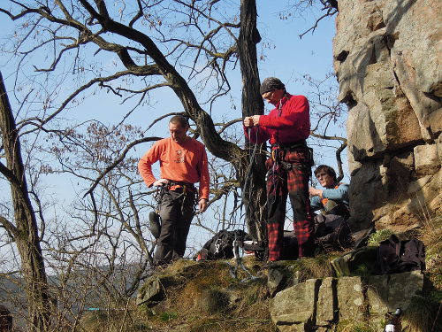 Přilby? Nechám na vás. Skály zvětrávají, něco jsme odhodili a každý rok něco upadne i na Rovišti.
