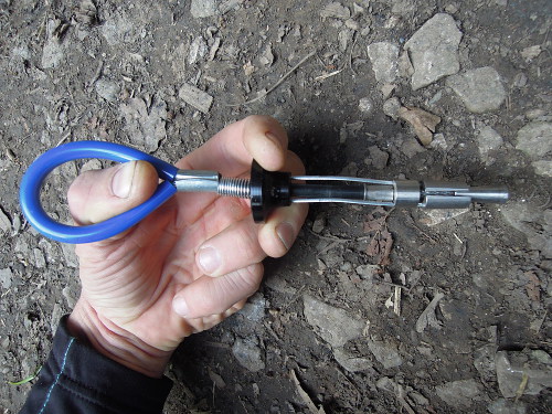Trochu obtížnější bylo vyndavání, kdy je nejlepší kovové části sklepnout důlčíkem dovnitř do díry, aby se friend uvolnil a šel vyndat, viz návod:  Friend pro vrtané díry - Návod