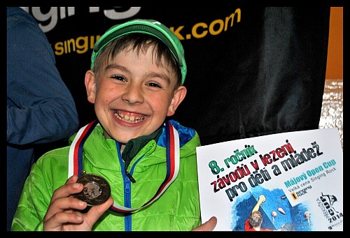 Ale co, horolezci jsou přeci na vrtochy počasí zvyklí a stěnka má stříšku… Všichni lezli i v dešti, sušili se, lezli, sušili, smáli se, klábosili, pili čaj, nikdo si nestěžoval, skvělá atmosféra… Těším se na další závod!