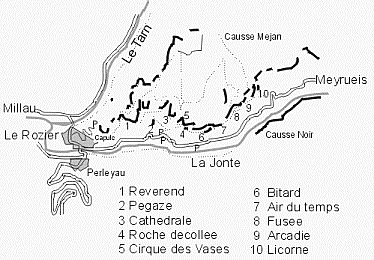 Velmi pekne udelaneho pruvodce, bez ktereho se v oblasti tezko obejdete, si muzete koupit v La Rozier, z neho se pak presne zjistite jednak pristupy k sektorum a take kde se nachazeji lezecke cesty.