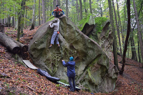 Kameny jsou vytažené zpod mechové pokrývky - boulderů je kolem 80 a jsou různorodé, od tafonů v převisech, po technické rajbasy v rozmezí obtížnosti 3 - 8A. Příští víkend by se měly teploty pohybovat okolo 12°C = ideální podmínky tření. Nezapomeňte si čepici, rukavice a péřovou bundu, k dispozici budou v areálu závodu várnice s teplým čajem a