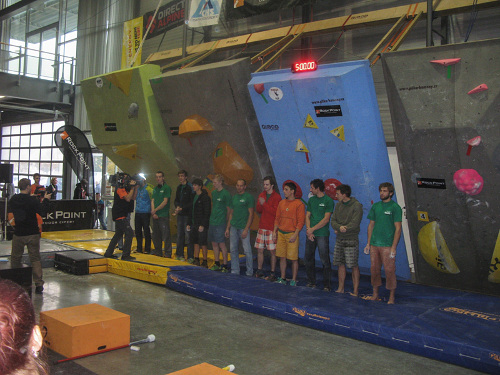 Po poledni se do finálových kousků pustili muži. Podle kvalifikace to vypadalo zejména na souboj bratrů Stráníků jimž se bude snažit sekundovat zbytek finalistů.  Jako rozhodující se ukázal čtvrtý boulder, kdy zejména Ondra Nevělík podal strhující výkon a srdnatým bojem boulder na šestý pokus vylezl což mu přineslo stříbrnou pozici a vklínil se tak mezi Martina  a Štěpána Stráníkovi. Martin si třemi pokusy na čtvrtém bouldru zaslouženě odnesl pohár městaBrna za vítězství, Štěpánovi stačila zóna pátým pokusem na bronzovou pozici.