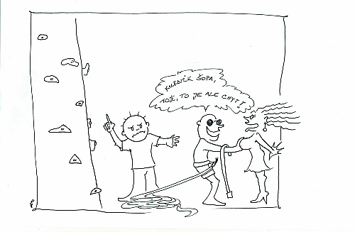 Ona to ani není žádná novina. Lezce s nějakým zdravotním postižením prostě můžete na stěně či skále, popř. i v horách potkat, no, nějaký ten pátek určitě. Nevidomý Honza Říha u nás bude asi nejznámější, ale zdaleka ne jediný. Pravda, často si toho ani jeden nevšimne, že má někdo pod teplákami protézu, nebo nevidí... Ale takového lezce, který pod stěnu přijede na vozíku, toho byste asi nepřehlédli.