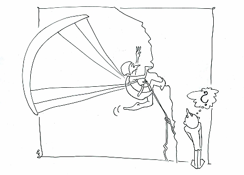 Paralezení? Co to je?!? To bude něco s parašutisty? Jako basejumping jen s tím rozdílem, že si nahoru musíš vylézt sám s padákem na zádech?! Eh?