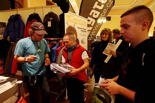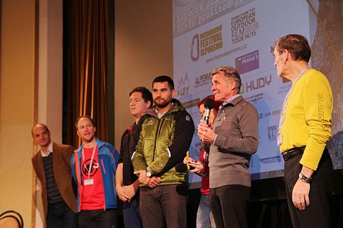 Páteční program byl tedy především o outdoorových filmech, které kromě alpinistických a lezeckých disciplín nabídly také skvěle zpracované záběry z mountainbikingu, speleologie, extrémního lyžování a kajaku. Prvnímu hodinovému bloku filmů předcházela velmi příjemná přednáška naší přední lezkyně Edity Vopatové, která si užívá lezení po celém světě. Po prvním hodinovém „filmovém nářezu“ přišel na pódium přední světový odborník na počasí na horách – Rakušan Karl Gabl. Díky Aleně Zárybnické a Michalu Žákovi si nově můžeme jeho publikaci „Počasí na horách“ přečíst v češtině. Právě česká verze byla na pódiu slavnostně pokřtěna. Naopak křest zcela nové součásti MFA tzv. „Outdoor stage“ měl ve svých rukou Honza „Tráva“ Trávníček. A zhostil se toho skvěle, když početnému publiku představil v přednášce a filmu expedici na K2. Potom už následovala další hodinová porce skvělých filmů a losování hodnotných cen pro diváky. Páteční premiéra se vydařila – těšme se na dva další již klasicky „přednáškové“ dny!