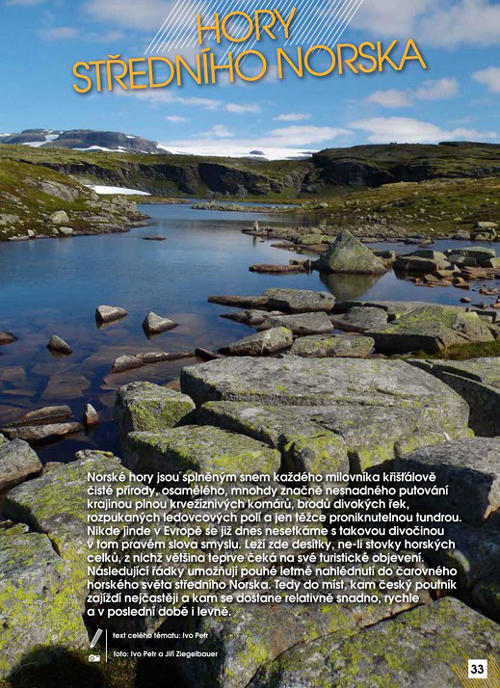 Norské hory jsou splněným snem každého milovníka křišťálově čisté přírody, osamělého, mnohdy značně nesnadného putování krajinou plnou krvežíznivých komárů, brodů divokých řek, rozpukaných ledovcových polí a jen těžce proniknutelnou tundrou. Nikde jinde v Evropě se již dnes nesetkáme s takovou divočinou v tom pravém slova smyslu.