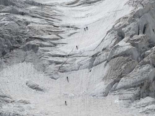 Když se nakonec oklepu tak nad sebou zahlédnu Francka. Stojí bezradně na místě mého dopadu a v ruce nemá žádný cepín. Voláme na sebe a Franck mi říká, že svůj cepín dal Nimovi, aby mu při sestupu, který měl být téměř kompletně po fixech, nepřekážel. A nyní není traverz, na kterém jsem utrhl fixní lano, schopen překonat. Nima je pryč a mě tedy nezbývá nic jiného, než se vydat zpět nahoru. Dostoupám k Franckovi a pak traverzujeme koordinovaně na povel vedle sebe držíce se jednoho cepínu mezi námi. Po dalších fixech už postupujeme značně opatrně a snažíme se je tolik nezatěžovat. Až poté, co dosáhneme našich vlastních fixů, tak náš postup zrychlíme a kolem 16 hodiny jsme zpět v táboře C3.